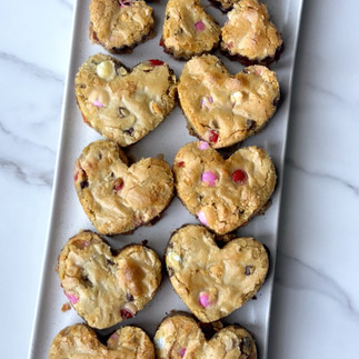 My gluten free Valentine's Day Blondies are a pink lovers dream! Ooey-gooey and filled with pink and red M&Ms, white chocolate chips, and mini chocolate chips! They even perfectly crinkle on top like your classic blondie! Make these for your next Galentine's gathering, Bachelor/Bachelorette watch party, or any time you need more pink in your life!